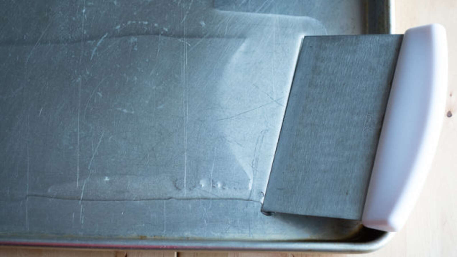 Use a Table Scraper to Grease the Pans Evenly.