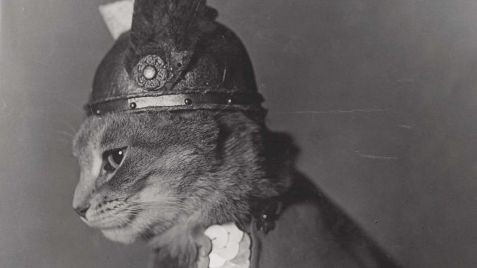 Brünhilde is a 1930s cat dressed like a Viking, which, unfortunately, is not a war photo: