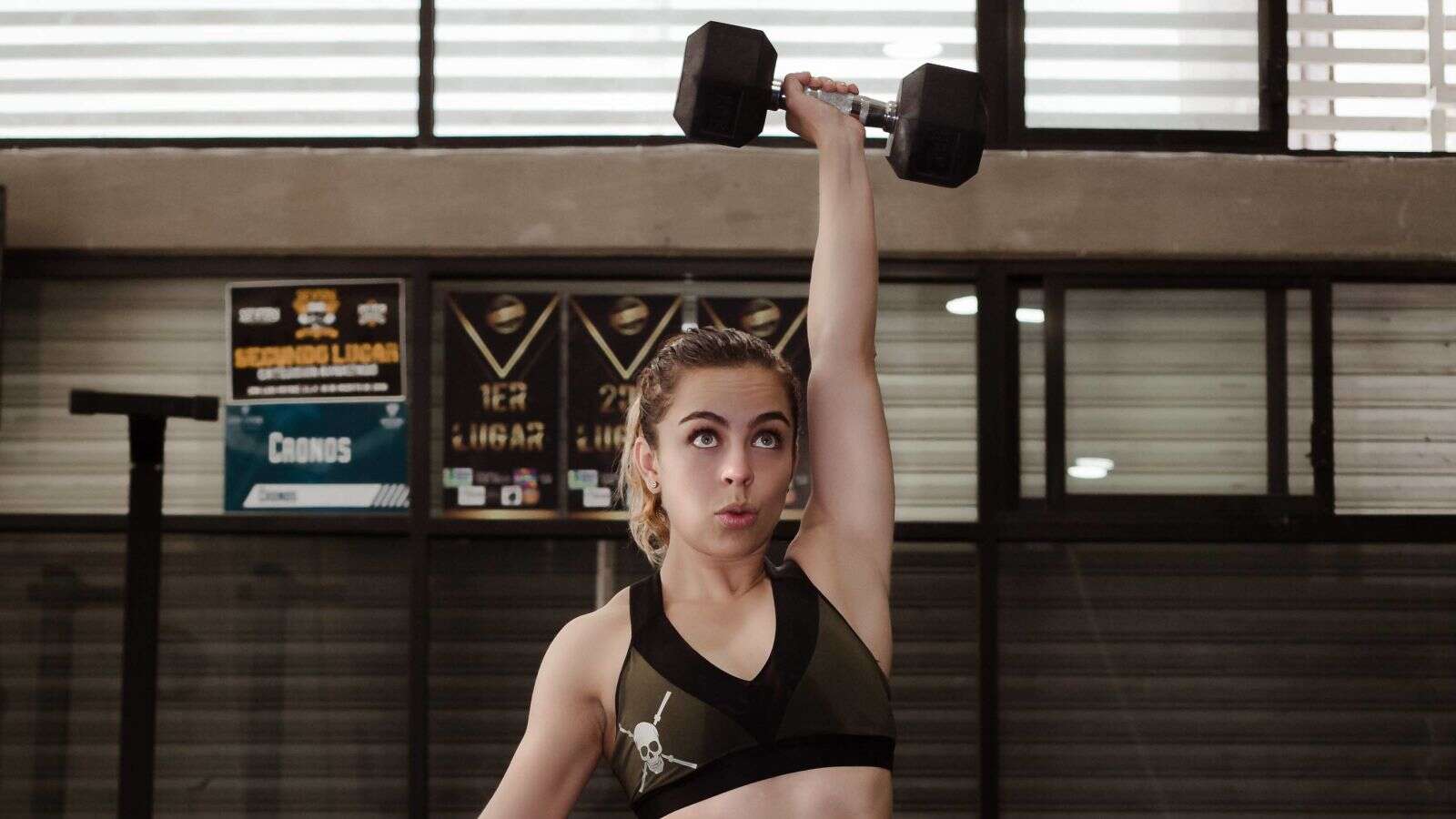 Take a heavy dumbbell with one hand – if you have two, place the other on the floor – and do the arm exercise of your choice. For example, you can stand up and click on it above your head. You will notice that your entire body has to adjust in order to maintain balance: the muscles on the sides of your torso have to engage, and you can also feel it in the thigh on the opposite side. You will also have to pay more attention to exactly how you move the dumbbell to make sure it is on a steady line at all times.