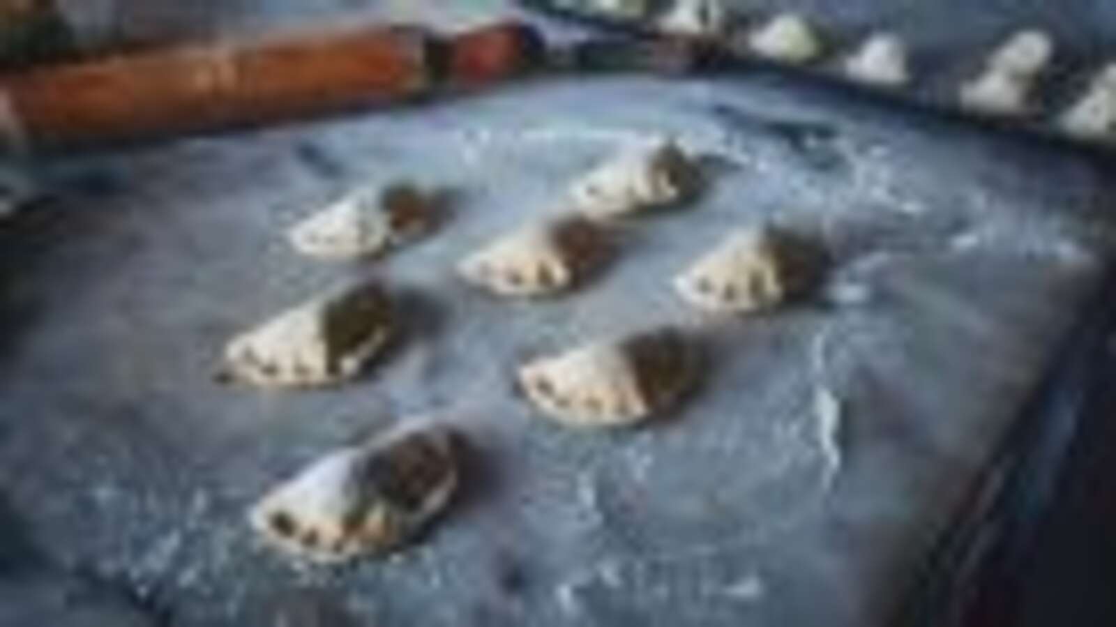 If you’re out of zip bags or prefer not to use them, I’ve found a baking sheet or a couple of baking plates to do the job just fine. Whichever dish you choose, after a few minutes – and quickly wipe off the condensation – your work surface will be at the ideal temperature to roll out even the most oily dough with ease.
