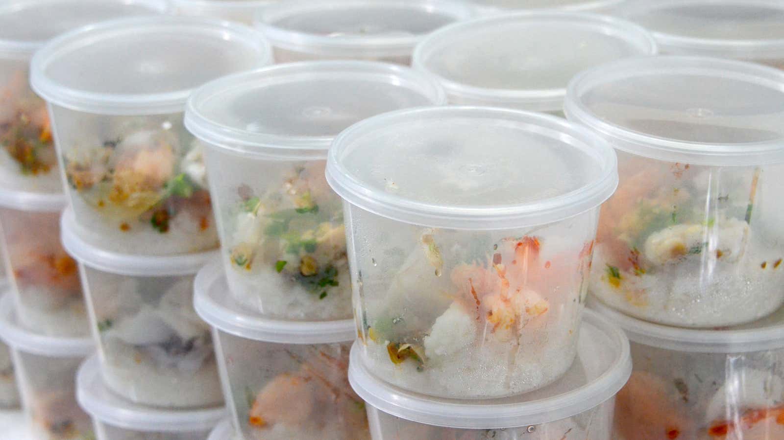 The soup containers we have praised before are excellent for several reasons. Their wide necks and stiff sides make filling easier than freezer bags; they fold up like in a dream; and you can see them inside , which means that you are more likely to eat the food contained inside. They are recyclable, microwave safe, freezer safe and can be thrown in the dishwasher for easy cleaning and reuse. Indeed, they are the best. ( Dave Arnold is a fan too , so trust Dave if you don’t trust me.)