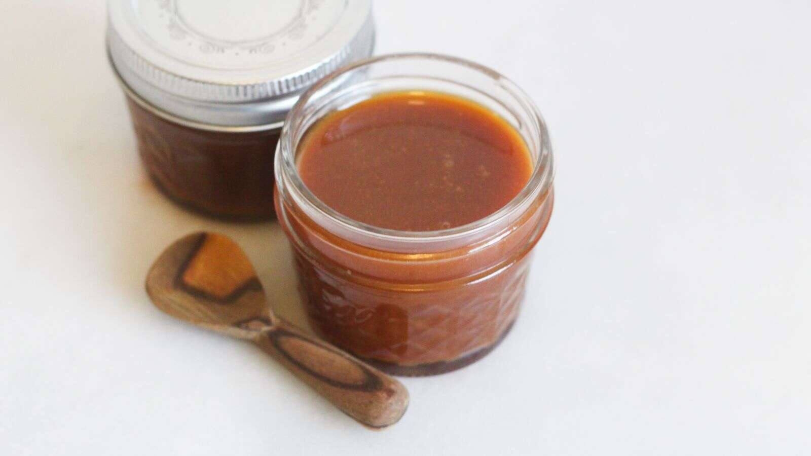 Since I don’t need two rather large cans of caramel sauce, I cut this recipe in half, resulting in the two small cans you see in the top photo. I used salted butter (because that’s all I ever had) and I ended up adding a pinch of salt anyway. The result is a sauce with a deliciously spicy surprise at the end. At first you will think that “this is the caramel that I know and love”, but then a little sour cream will come in at the end, violating your palate and your very idea of what a caramel sauce should do. It’s also a great way to use up the last half cup of sour cream if you don’t want to dip it in your mouth along with Doritos nacho cheese.