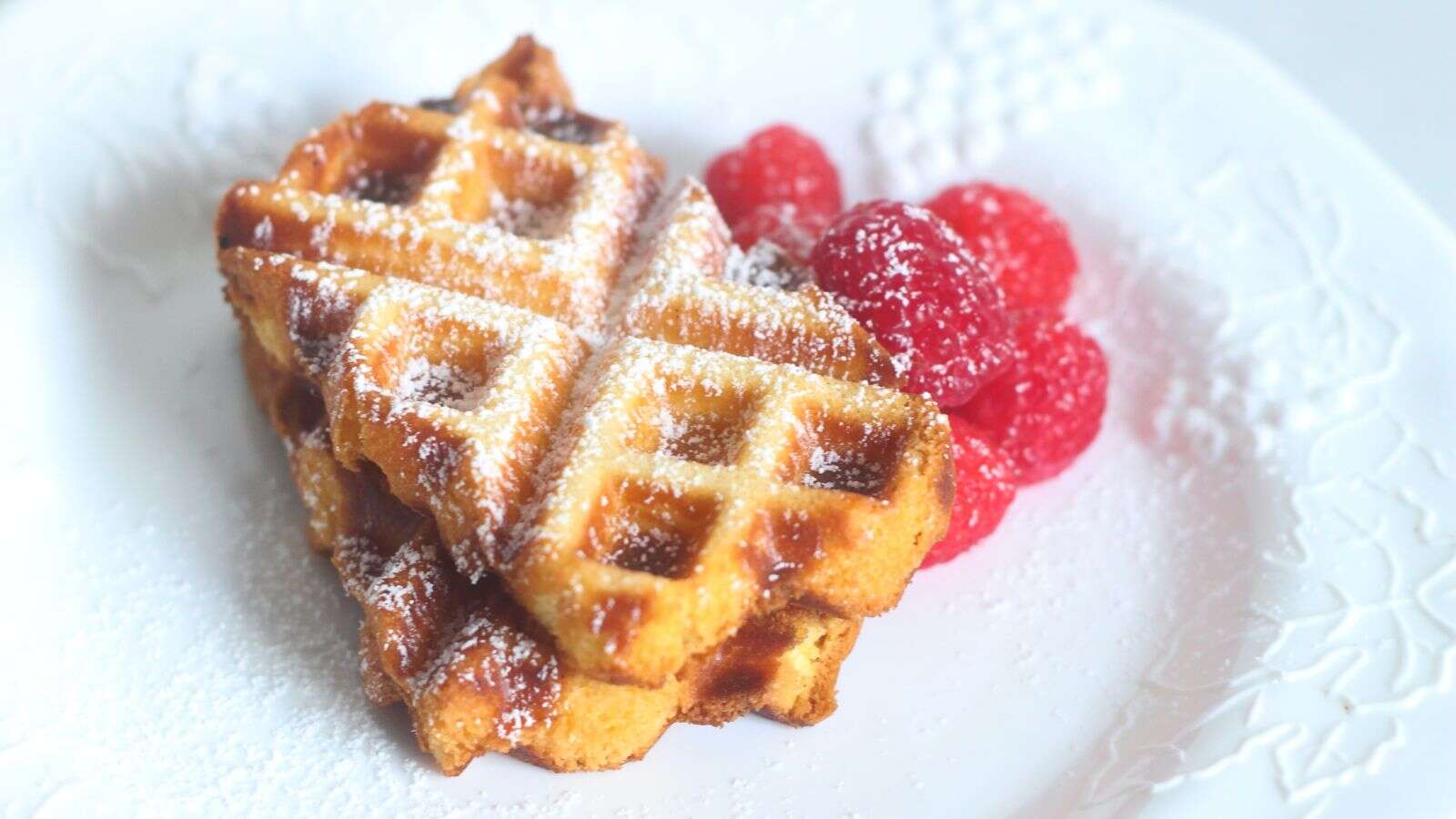 But more importantly, the pound waffle cake is delicious. It’s the perfect brunch – a buttery, buttery waffle with sweetness softened by its slightly crispy golden tops and troughs. You can serve it with butter and syrup or fresh fruit like any waffle, but a really bold move would involve some sort of breakfast sandwich scenario, preferably with pork sausage. (Why not make a sandwich like this and take a photo for this blog? Unfortunately, I ran out of pork sausage .) I would also think it would make a nice ice cream sandwich.