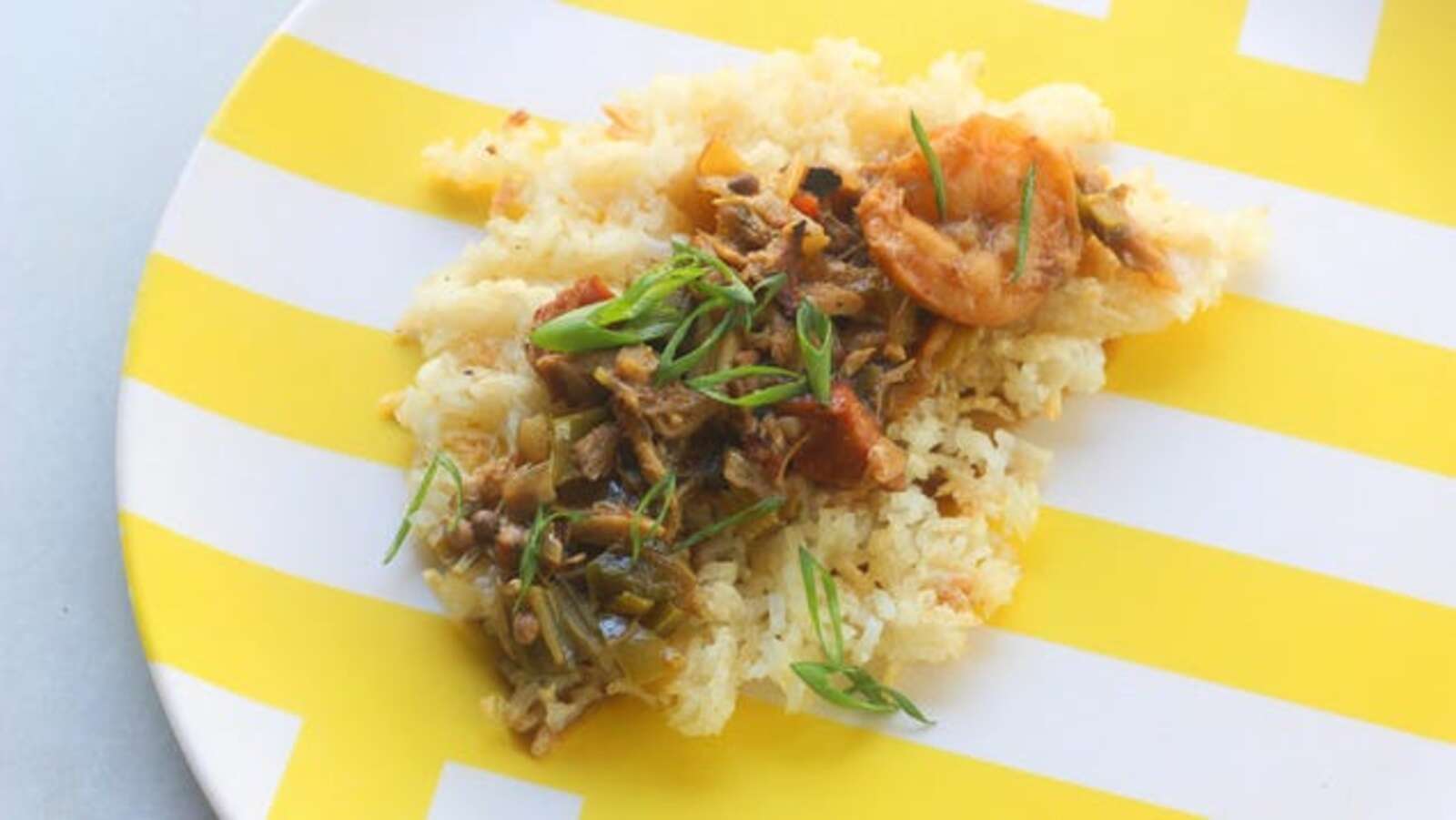 I love rice. I like freshly cooked, fluffy and tender, or fried until crispy with a runny egg. It also makes very good, satisfyingly crunchy waffles – a waffle that turned out to be the perfect platform for some gumbo my stepmother gave me.