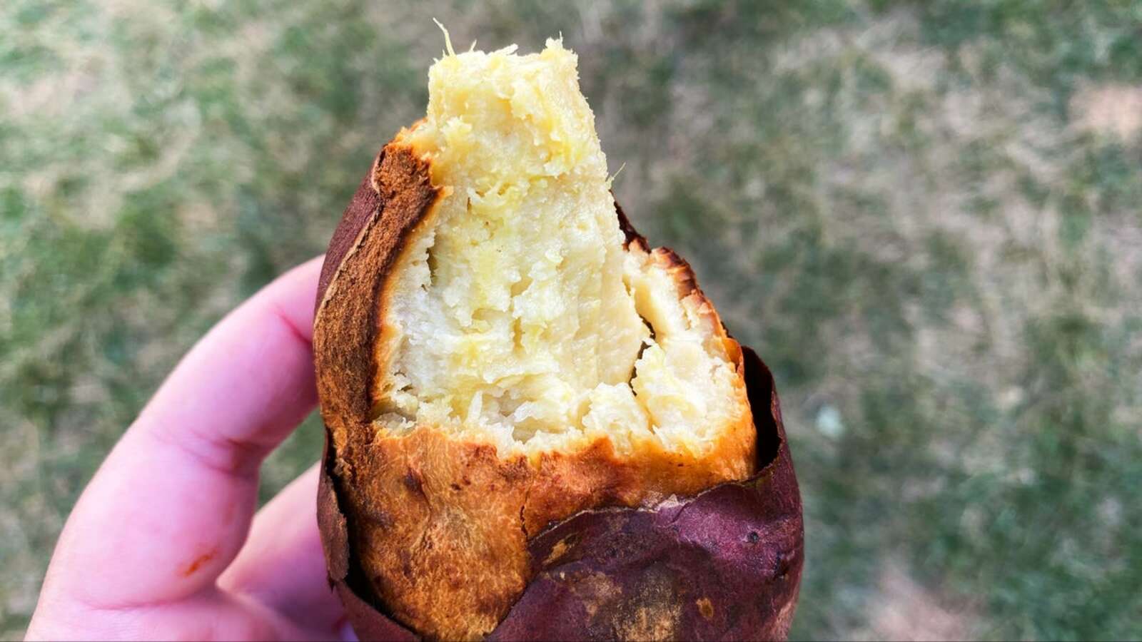 As you can see in the video, making one of these sweet potatoes is easy. All you need is a small, thin, yellow-fleshed Japanese sweet potato and a freezer bag. Rub it well and then place – unpunctured – on a 450 degree oven rack. Fry for about an hour, until the skin is completely separated and the sugar begins to ooze.
