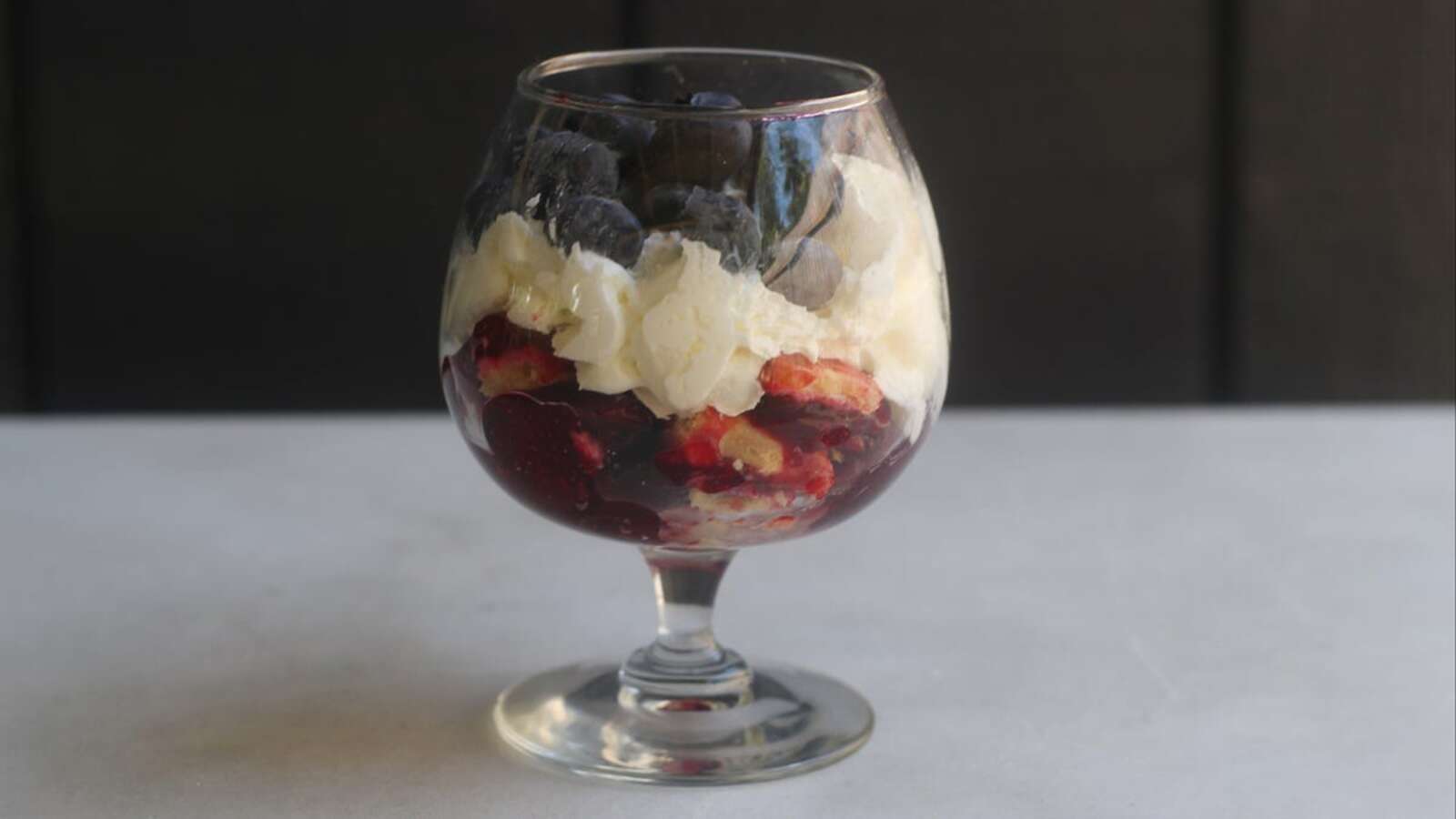 The format for this treat is simple: Place the whipped cream and blueberry cherry pie slices in a pretty glass, then spoon it down. You can also use blueberry pie and fresh cherries if you want to change it up a bit. Use a store-bought pie; homemade cake is too precious to be crumbled.