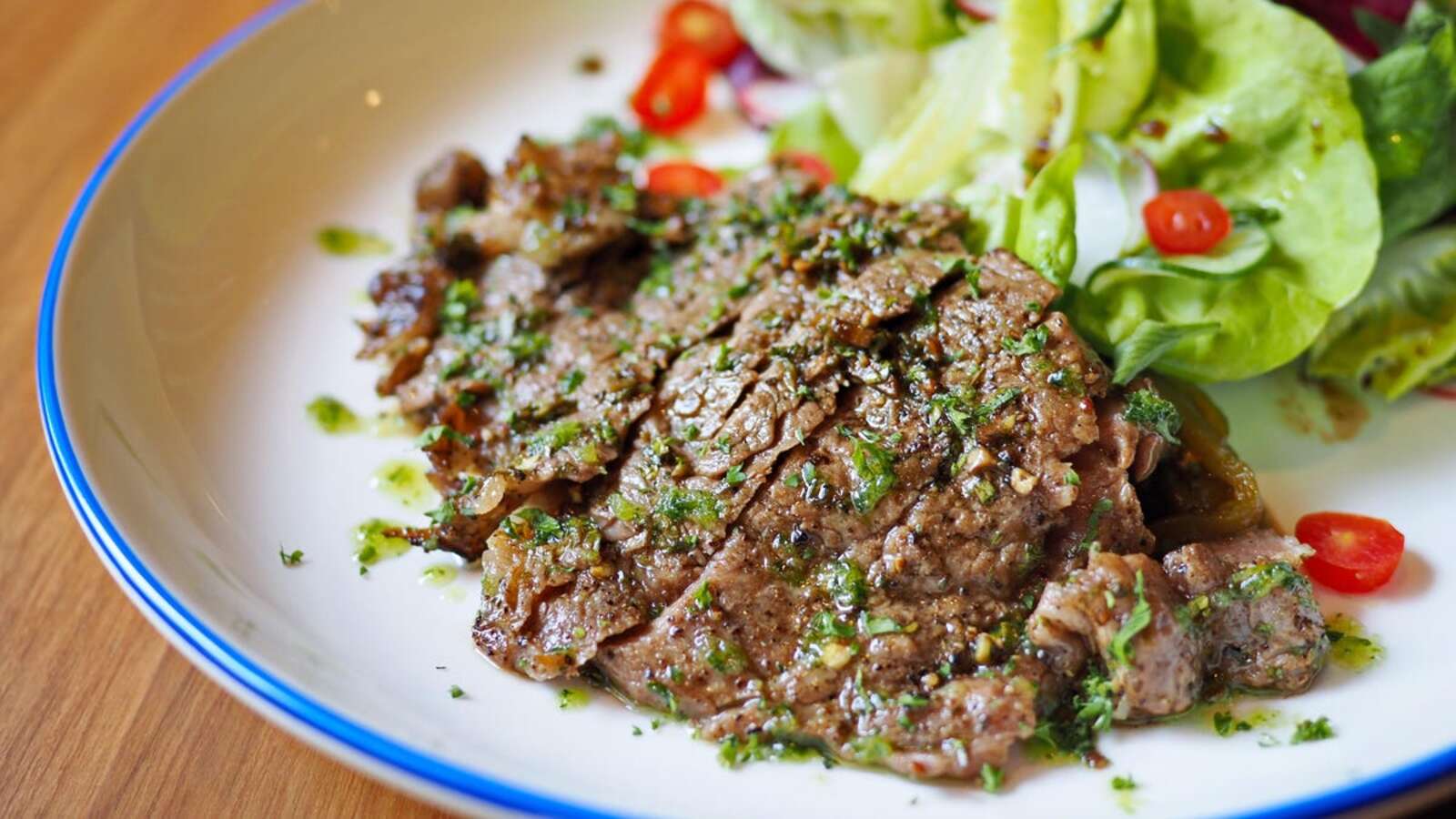 In the early 2000s, flank steaks were in vogue – bavet, if you like. You were hard pressed to find a TV chef who was not extolling his virtues, one of which used to be his availability. The growing popularity has driven prices up for flank steaks, but that doesn’t change the fact that this cut goes well with marinade, is easy to prepare and has a great cold taste. Chimichurri sauce, which is by no means traditional, serves the dual function of marinade and dressing, offering the flavor of summer in every bite.